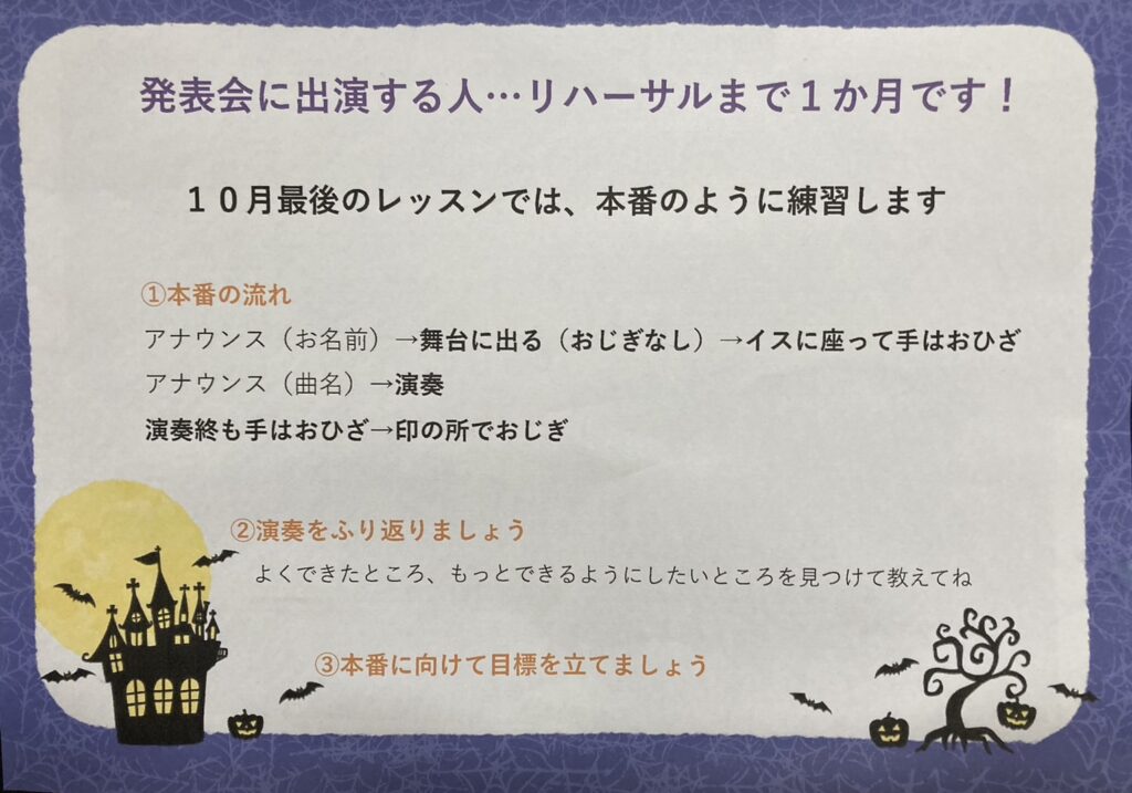 出演してくださったみなさんの頑張り、当日見聞きしたステキなところ、普段のレッスンの様子を交えご紹介する予定です。