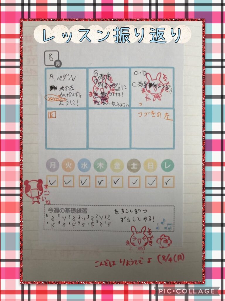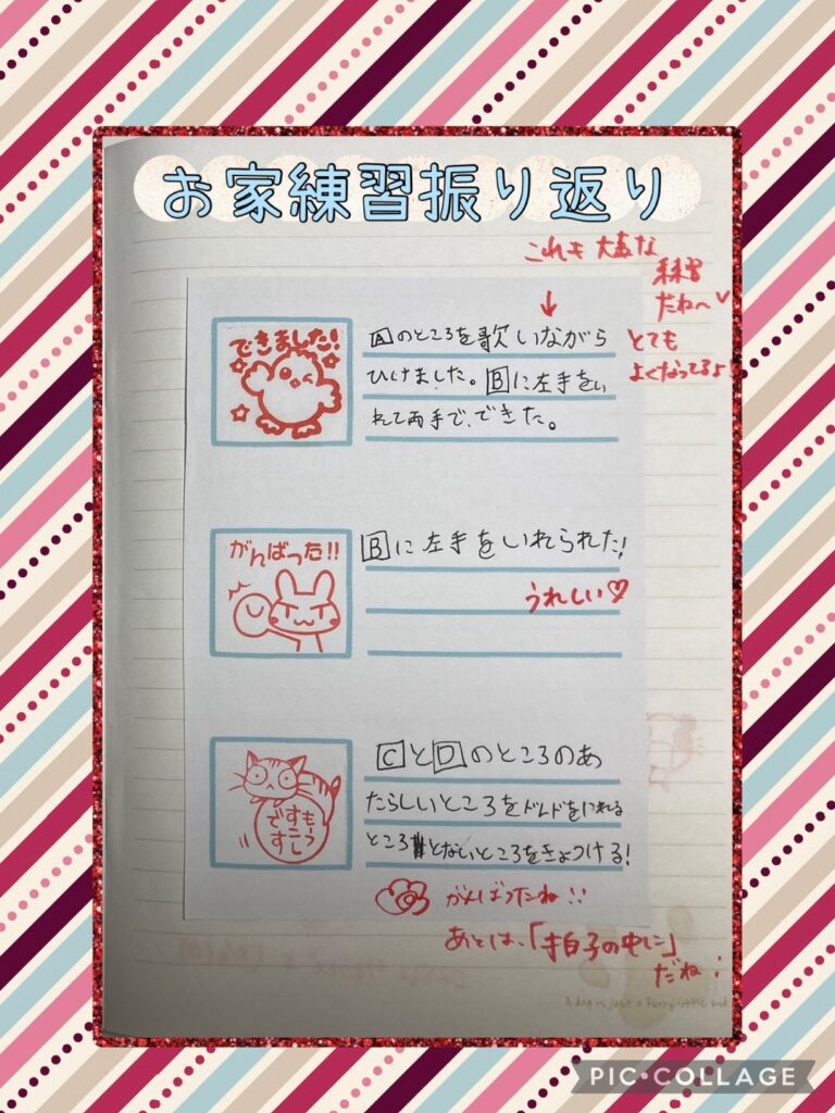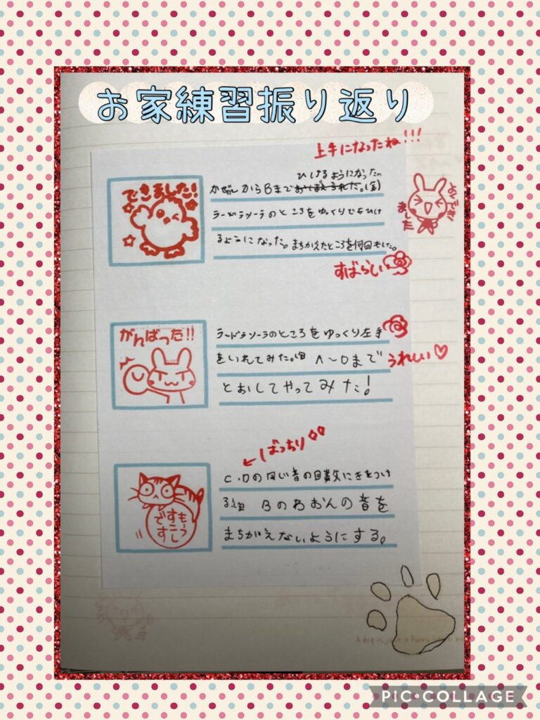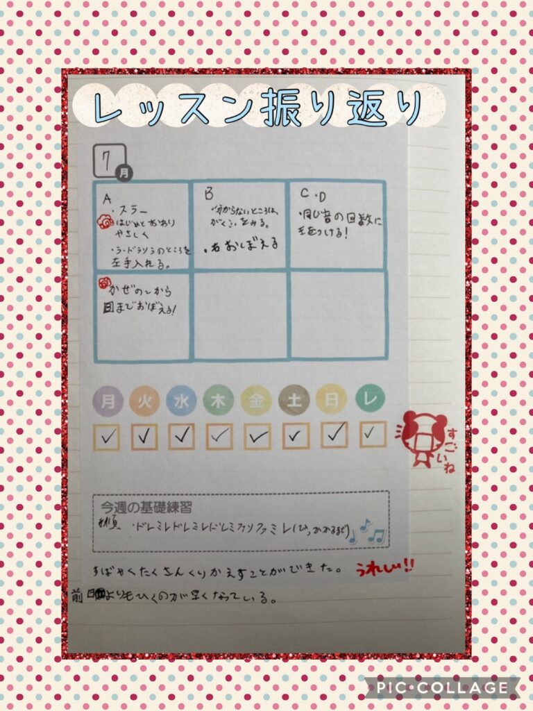 このように、レッスンの振り返りとお家練習の振り返りを丁寧にできたSちゃん。