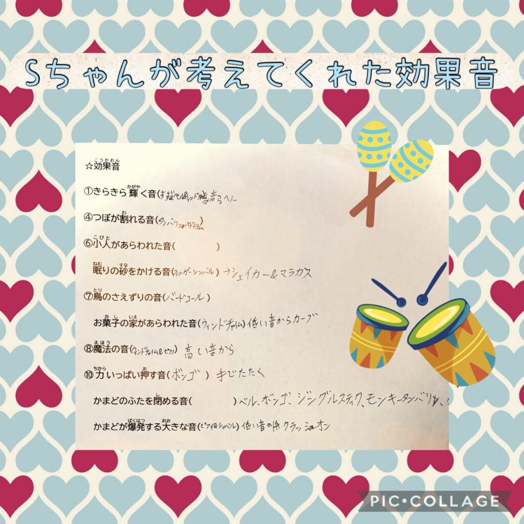 次回の本番では、いつものソロや連弾の演奏に加え、「物語&演奏」のステージを設けるのですが、打楽器を使って、効果音を付けることを説明したところ、たくさんのアイディアを出してくれたのです😊✨